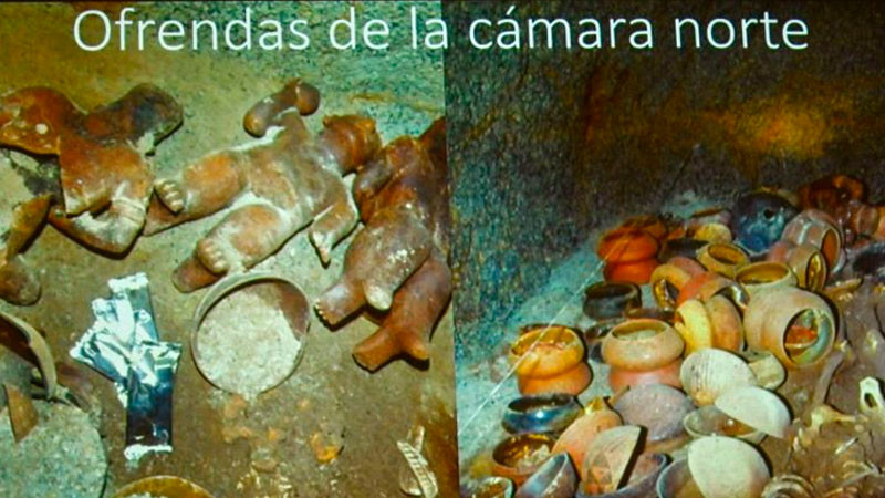 Asimismo, dijo, el registro de larvas de moscas necrófagas en contextos como la Tumba de Huitzilapa indican que se mantenían abiertas por un lapso prolongado, “lo que habla de un ceremonial público por varios días”.